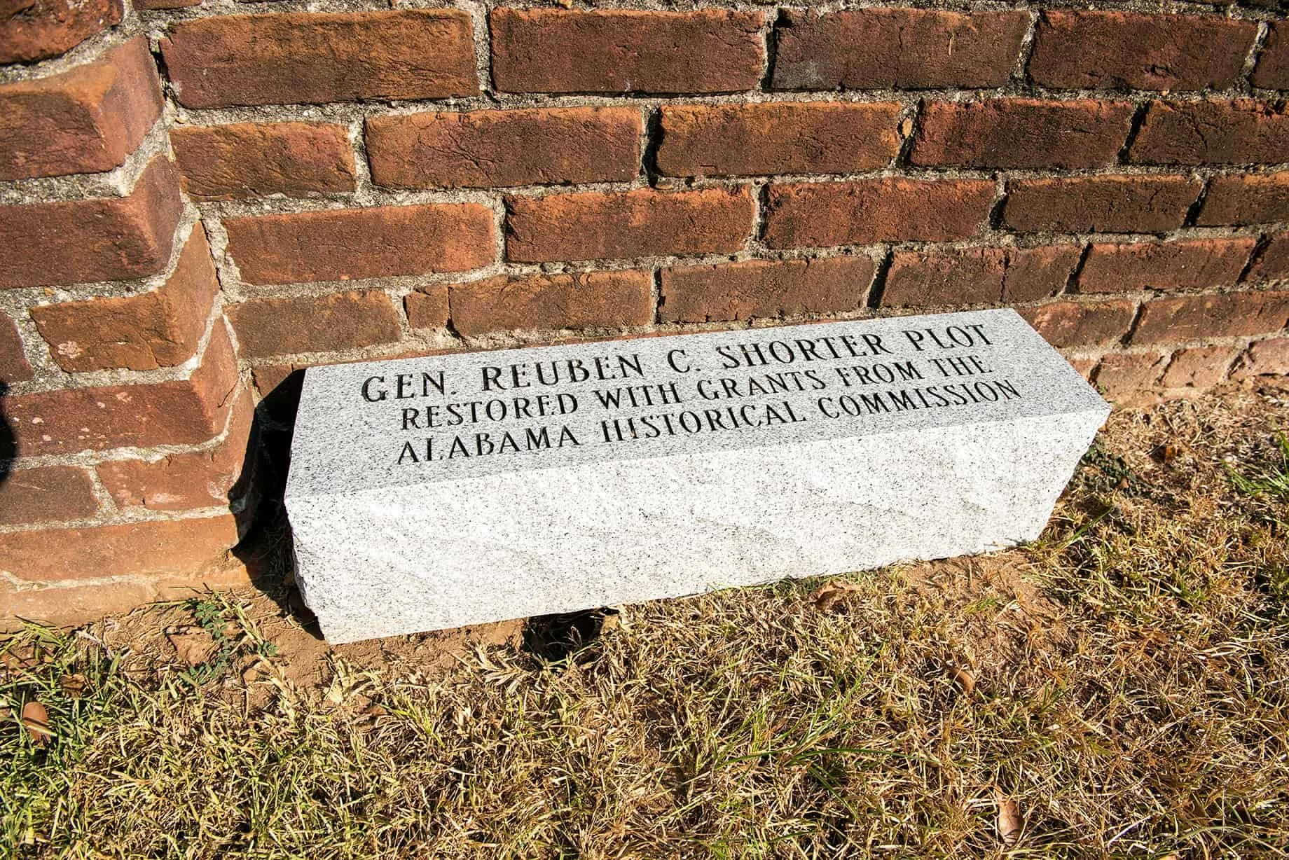 General Shorter’s plot is the original plot at the cemetery. It is surrounded by a high brick wall. The plot contains his and his wife’s graves plus the graves of five of their children, a son-in-law, six grandchildren and their family preacher.